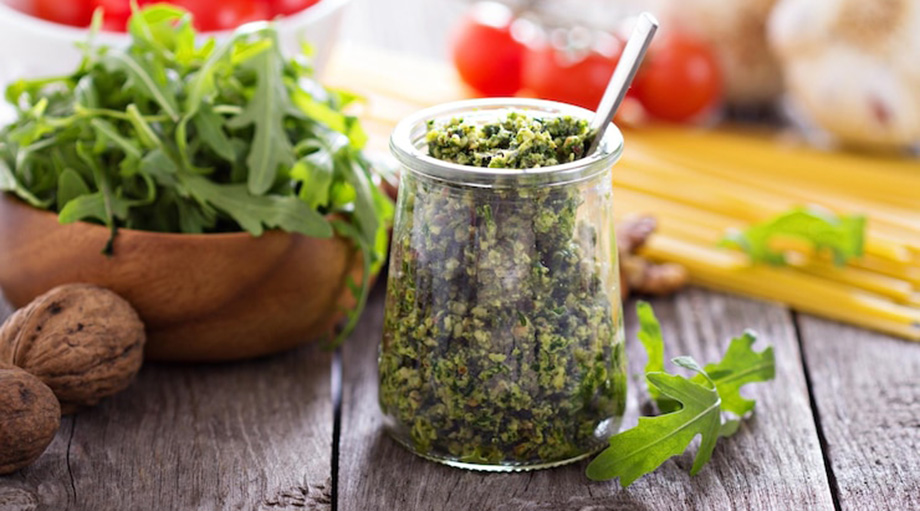 Esta receta de pesto artesanal está elaborada con ingredientes 100% naturales: albahaca fresca, piñones tostados, queso Parmigiano Reggiano DOP, ajo y aceite de oliva virgen extra. Sin conservantes ni colorantes. Su textura cremosa y sabor equilibrado hacen que sea ideal para pasta, bruschettas, pizzas o como base para salsas. Producto elaborado en pequeños lotes con técnicas tradicionales italianas.